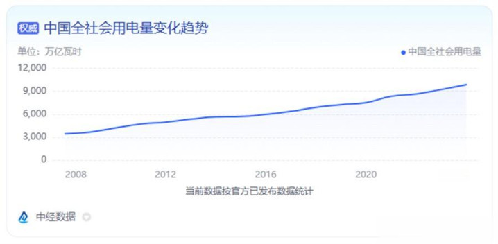 首先,未来几年,中国的用电需求将保持较高增速。据电力规划设计总院预计,到2030年,中国全社会用电增量将增长到11.8万亿-12.5万亿千瓦时。这意味着,未来几年内,我国全社会用电增量将在3万亿千瓦时左右。